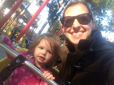 It was pretty fun taking the kids this year. Addie is close enough to the minimum height requirement for the camp snoopy rides so the workers let her go on all of them. She went on everything she was allowed to ride. She's pretty gutsy I must say. And the big girls still love all the little kid rides so it worked out well. Poor Angus was sick so he just sat in the stroller all day. But it was probably better than having an active toddler trying to explore the park on his time table. And Mya still runs away from Snoopy so we were only able to get a pic of Winter and Addie with the big friendly doggie.